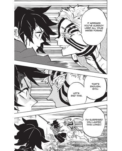 The battle between Tanjiro, Giyu and Akaza continues. To beat Akaza, Tanjiro must use an advanced technique his father taught him—the Transparent World—which will push him beyond his limitations. Elsewhere in the Infinity Castle, Shinobu, burning with hatred, confronts Doma, the demon who killed her family. Can she take on the powerful demon by herself?