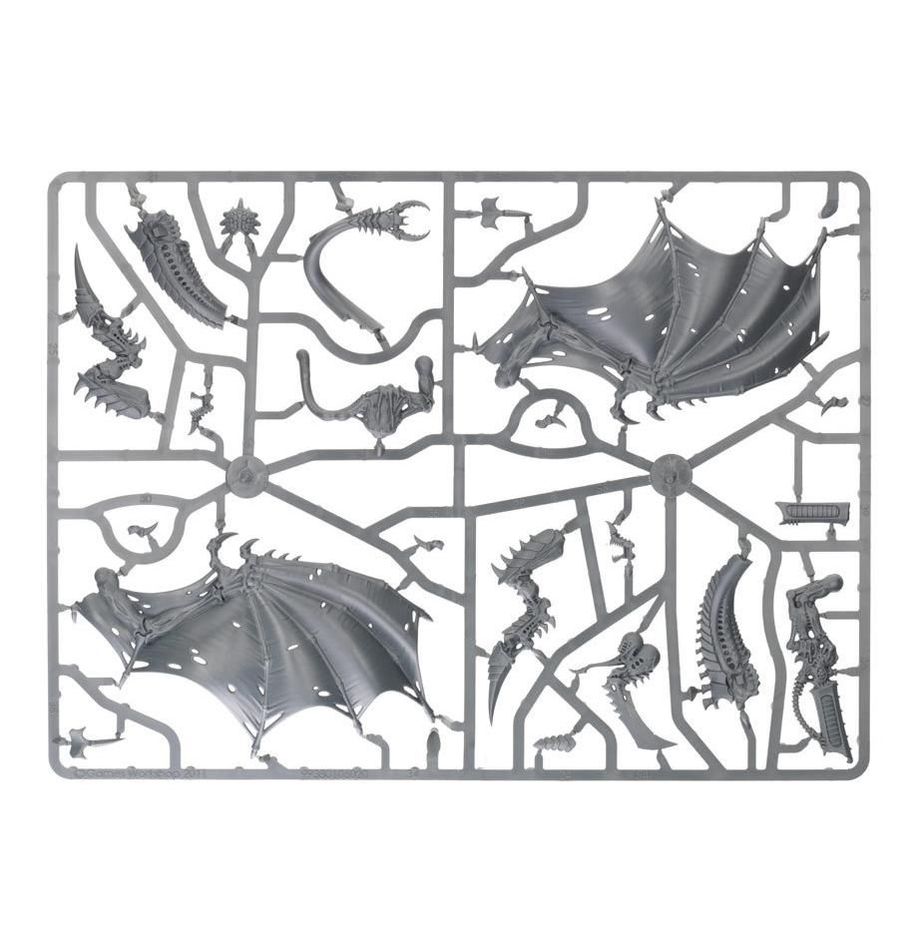 Този многочастов пластмасов комплект изгражда един Крилат Хив Тирант – впечатляващо и невероятно динамично чудовище, което може да бъде сглобено, за да поеме различни роли на бойното поле. Това страховито създание е перфектен централно разположен елемент за всяка армия на Тиранидите – то е позирано с разперени, влакнести и разкъсани крила, като единствено опашката му, наподобяваща змия, докосва земята, сякаш стартира в полет или скоква към плячката си. Комплектът предлага огромно разнообразие от оръжейни опции, включително два сечещи нокти, тежък отровен канон, канон със сплетен трън, костен меч и бич – както и биоморфи като надбъбречни жлези и токсични мехури, плюс други компоненти за персонализиране на Крилатия Хив Тирант. Можете също така да изберете да изградите комплекта като безкрил Хив Тирант или като подмолната същност на Свармлорда.